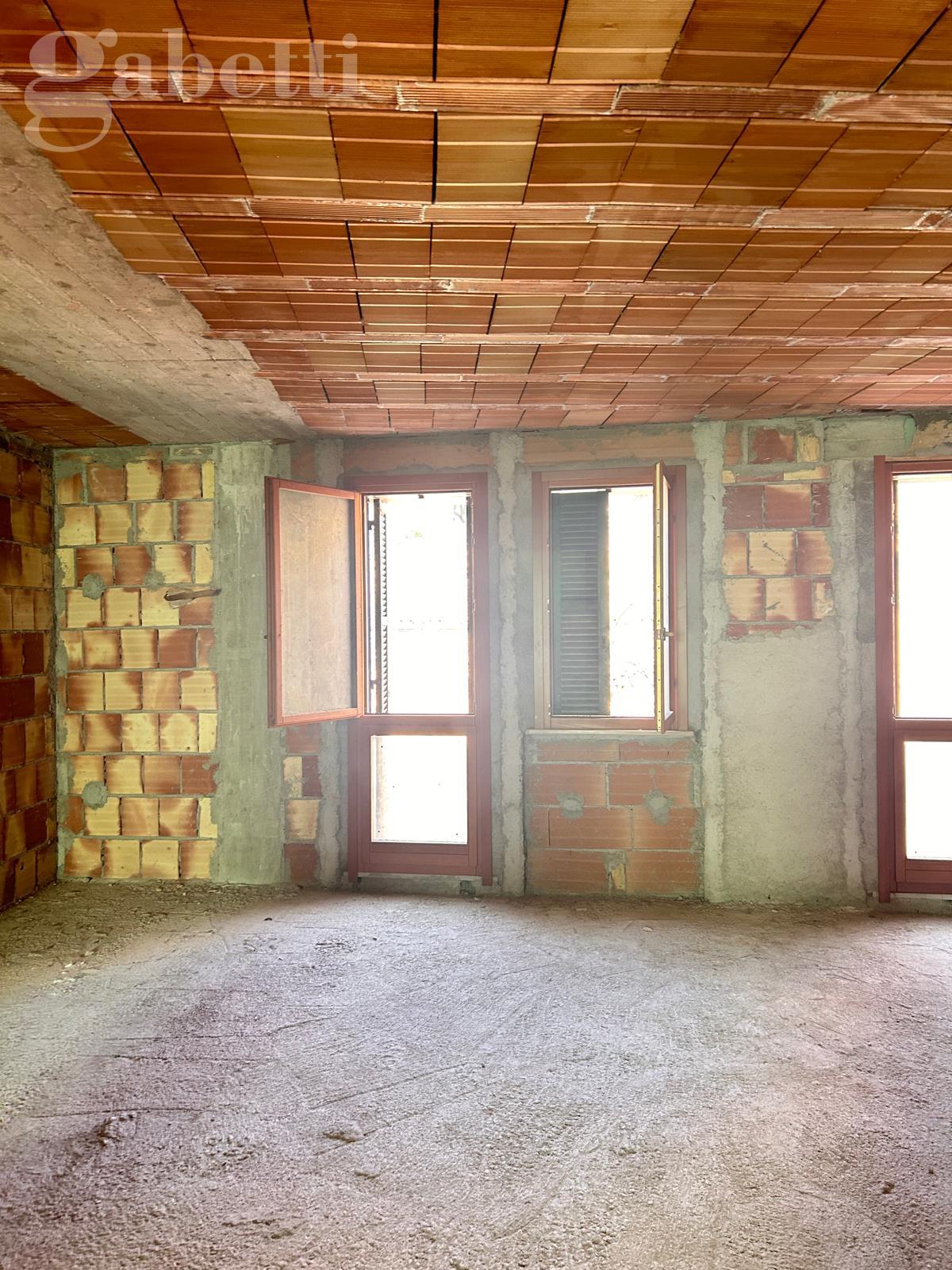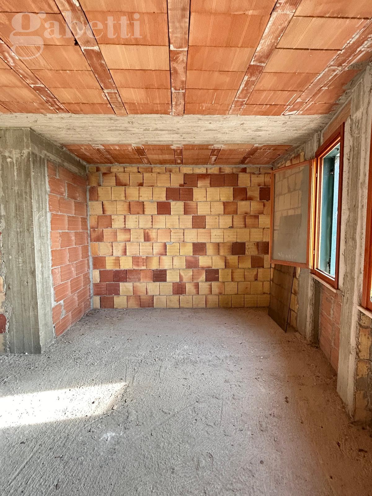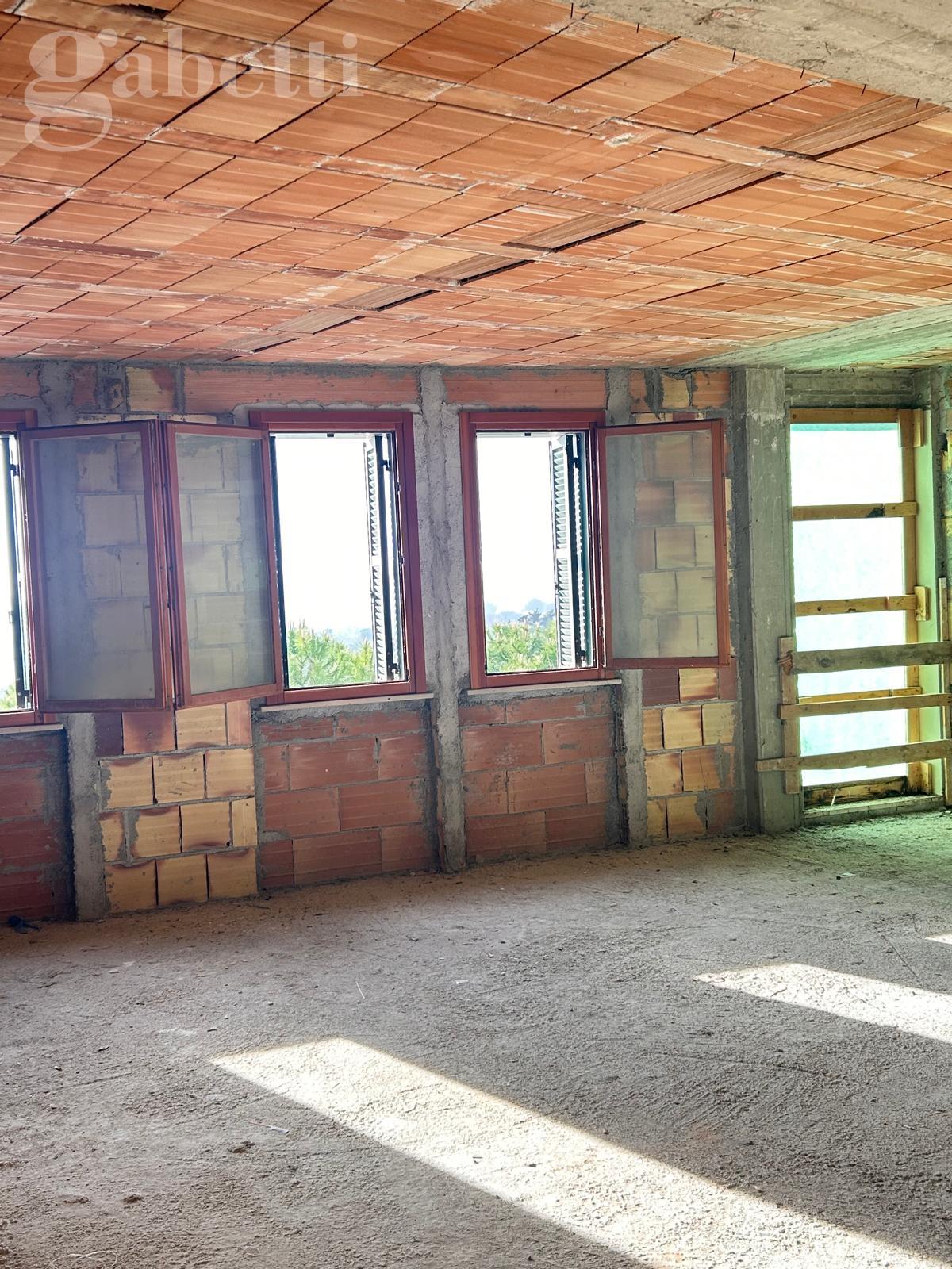 SENIGALLIA: Località Scapezzano, appartamento in villetta a schiera bifamiliare, di mq. 112 + soffitta/ mansarda collegabile internamente di mq. 36, terrazzo a tasca di mq. 12. Da ultimare